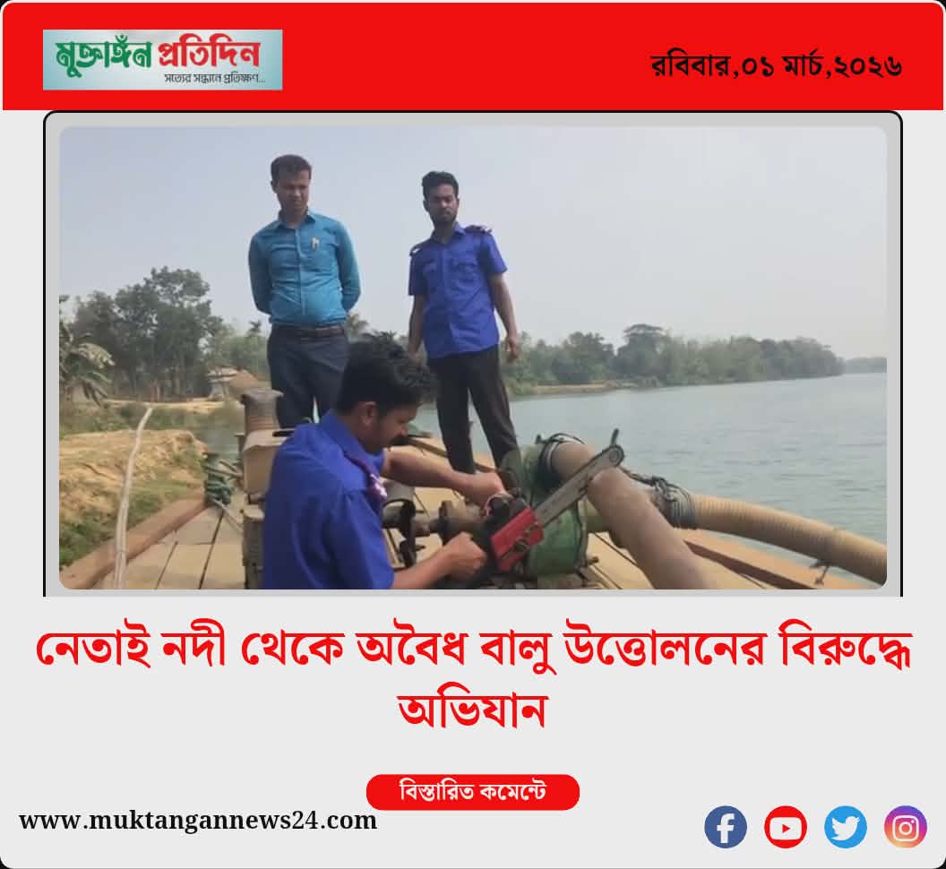 নেতাই নদী থেকে অবৈধ বালু উত্তোলনের বিরুদ্ধে অভিযান