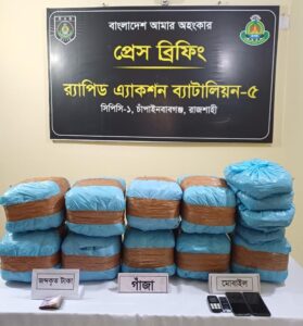 চাঁপাইনবাবগঞ্জে মালবাহী ট্রাকে অভিনব কায়দায় মাদতদক পরিবহনের সময় বিপুল পরিমাণ গাঁজাসহ তিন মাদক কারবারীকে গ্রেফতার করেছে২ র্যাব-৫। বৃহস্পতিবার (২ এপ্রিল) দুপুরে সদর থানাধীন মহানন্দা সেতু টোল ঘর সংলগ্ন এলাকা থেকে তাদের আটক করা হয়।